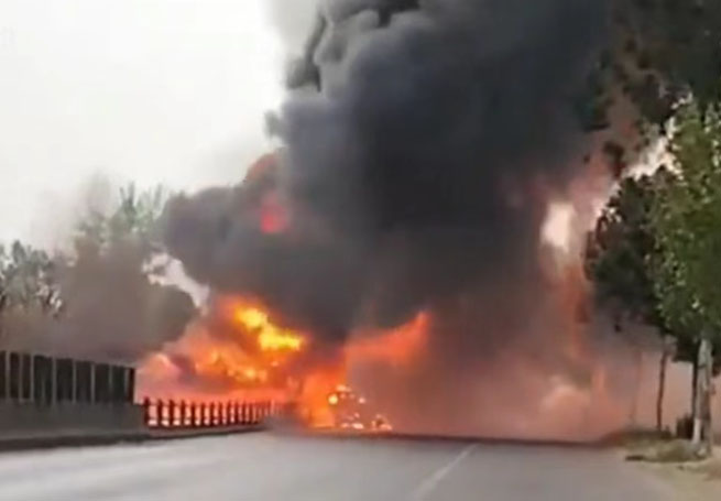 突發(fā)!河南;愤\輸車自燃,危險品有爆炸風險!