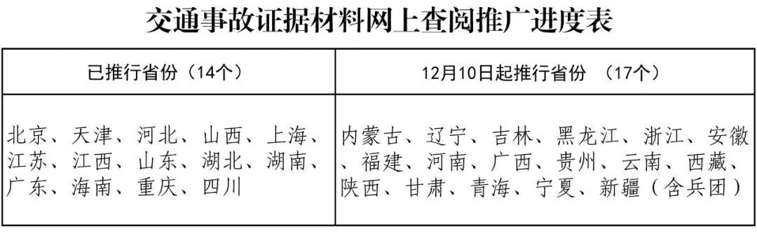 公安部統(tǒng)一部署,自今年12月10日起,在前期試點(diǎn)和分批推廣應(yīng)用基礎(chǔ)上,駕駛證電子化、二手車(chē)異地交易登記、“交管12123”APP核發(fā)貨車(chē)電子通行碼、交通事故證據(jù)材料網(wǎng)上查閱等4項(xiàng)“我為群眾辦實(shí)事”公安交管便利措施在全國(guó)全面推行。 01、全面推行駕駛證電子化提供在線“亮證”服務(wù) 駕駛證電子化已覆蓋北京、上海、廣州、西安等200個(gè)城市,受到群眾廣泛關(guān)注和普遍歡迎。目前,已有5000多萬(wàn)名駕駛?cè)祟I(lǐng)取電子駕駛證,實(shí)現(xiàn)手機(jī)在線“亮證”。 在此基礎(chǔ)上,將在全國(guó)全面推廣應(yīng)用,駕駛?cè)丝梢酝ㄟ^(guò)全國(guó)統(tǒng)一的“交管12123”APP申領(lǐng)電子駕駛證。推廣應(yīng)用城市發(fā)放的電子駕駛證在全國(guó)范圍內(nèi)有效,可以在辦理交管業(yè)務(wù)、接受執(zhí)法檢查時(shí)出示使用,并可以拓展客貨運(yùn)輸、汽車(chē)租賃、保險(xiǎn)購(gòu)置等社會(huì)應(yīng)用場(chǎng)景。 02、全面推行二手車(chē)交易登記“跨省通辦”免予往返兩地辦事 9月1日起,公安部會(huì)同商務(wù)部、稅務(wù)總局推行二手車(chē)交易登記“跨省通辦”,石家莊等218個(gè)城市已順利實(shí)施,80多萬(wàn)名群眾享受改革實(shí)惠便利。在此基礎(chǔ)上,將在全國(guó)全面推行。 對(duì)二手車(chē)異地交易登記的,將由轉(zhuǎn)出地、轉(zhuǎn)入地“兩地跑”變?yōu)檗D(zhuǎn)入地“一地辦”,車(chē)輛檔案由“兩地往返轉(zhuǎn)”變?yōu)椤熬W(wǎng)上實(shí)時(shí)轉(zhuǎn)”,進(jìn)一步減材料、減環(huán)節(jié),避免了車(chē)主跨省跨市來(lái)回跑路、費(fèi)時(shí)費(fèi)力費(fèi)錢(qián)。同時(shí),新措施的實(shí)施,在釋放潛力、擴(kuò)大消費(fèi)、促進(jìn)經(jīng)濟(jì)內(nèi)循環(huán)方面發(fā)揮了重要作用,助力暢通國(guó)內(nèi)大循環(huán)格局。 03、全面推行網(wǎng)上核發(fā)貨車(chē)電子通行碼著力解決“關(guān)鍵小事” 在已覆蓋天津等245個(gè)城市基礎(chǔ)上,在全國(guó)全面推廣應(yīng)用“交管12123”APP網(wǎng)上核發(fā)貨車(chē)通行碼,目前已核發(fā)6萬(wàn)余個(gè)貨車(chē)通行碼。 貨車(chē)駕駛?cè)丝芍苯泳W(wǎng)上申領(lǐng)、網(wǎng)上出示電子通行碼,有效解決貨車(chē)進(jìn)城難、辦證難等問(wèn)題,進(jìn)一步賦能貨運(yùn)行業(yè),助力現(xiàn)代流通體系建設(shè),推進(jìn)經(jīng)濟(jì)社會(huì)高質(zhì)量發(fā)展。 04、全面推行交通事故證據(jù)材料網(wǎng)上查閱提供陽(yáng)光透明政務(wù)服務(wù) 在北京、天津、河北、江蘇等14個(gè)省份推行交通事故證據(jù)材料網(wǎng)上查閱、已提供1.9萬(wàn)次查閱服務(wù)基礎(chǔ)上,在其余17個(gè)。▍^(qū))全面推廣應(yīng)用。 交通事故當(dāng)事人可以通過(guò)互聯(lián)網(wǎng)交通安全綜合服務(wù)管理平臺(tái)、“交管12123”APP查閱、復(fù)制交通事故現(xiàn)場(chǎng)圖、勘查筆錄、鑒定意見(jiàn)等證據(jù)材料,實(shí)現(xiàn)“現(xiàn)場(chǎng)查閱”延伸到“網(wǎng)上查閱”,為當(dāng)事人提供更多查詢渠道和便利,進(jìn)一步提升事故處理公正和公開(kāi)透明度、群眾滿意度,推進(jìn)交管政務(wù)信息公開(kāi)。