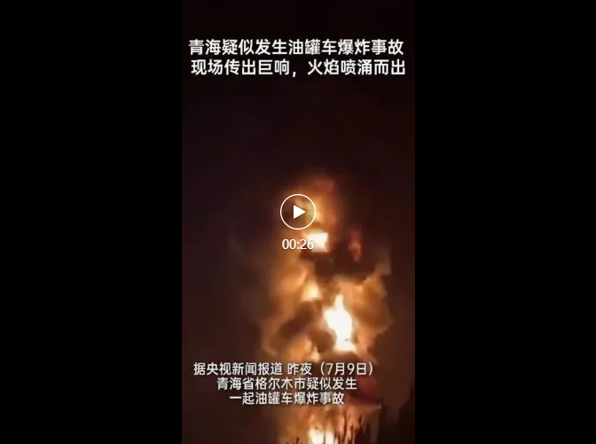 7月9日,青海省格爾木市疑似發(fā)生一起油罐車爆炸事故。據(jù)了解,爆炸造成2人受傷,傷者生命體征平穩(wěn),目前無人員死亡。