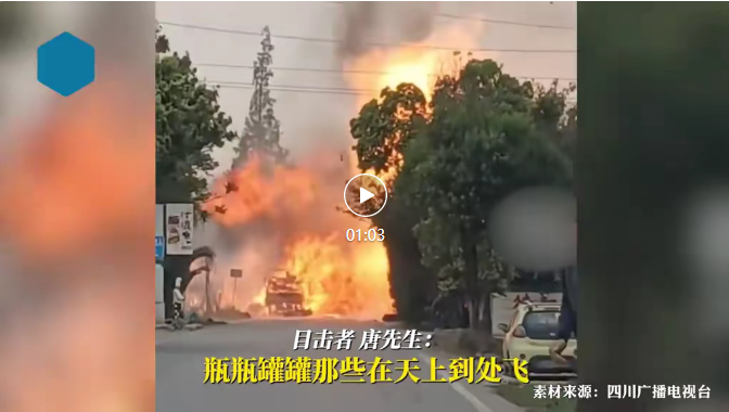 4月9日下午,四川德陽市旌陽區(qū)東湖街道大地村境內(nèi),一輛運(yùn)送液化氣罐的;奋囕v發(fā)生起火爆炸。 據(jù)附近目擊者介紹,9日下午3時(shí)左右,一輛運(yùn)送液化氣罐的貨車起火后,駕駛員棄車逃生,車上的氣罐隨后發(fā)生爆炸,有些被炸飛,“先后聽到十多聲爆炸聲”,周圍村民家的玻璃被震爛了不少。 “火很大,太嚇人了!”該目擊者稱,剛開始還有人在遠(yuǎn)處拍攝,發(fā)生爆炸后,拍攝者連忙離開了現(xiàn)場。隨后,民警、消防員、120醫(yī)務(wù)人員趕到,民警立即對現(xiàn)場進(jìn)行臨時(shí)管制,消防員隨后將火撲滅。 從參與救援的人員處獲悉,該起事故未造成人員傷亡。目前,起火原因正在進(jìn)一步調(diào)查中。
