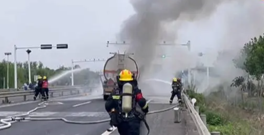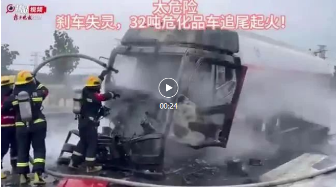 6月4日12時(shí)57分左右,江蘇淮安市消防指揮中心接到報(bào)警稱,位于淮安市洪澤區(qū)朱壩鎮(zhèn)往南京方向,;愤\(yùn)輸車追尾起火。 接到報(bào)警后,淮安消防支隊(duì)立即調(diào)派洪澤區(qū)大隊(duì)高良澗消防救援站3車14人趕赴現(xiàn)場(chǎng)處置。高良澗消防救援站到達(dá)現(xiàn)場(chǎng)后發(fā)現(xiàn),現(xiàn)場(chǎng)事故為;愤\(yùn)輸車追尾半掛車,;愤\(yùn)輸車車頭著火并冒出黑煙,駕駛?cè)藛T通過(guò)車載滅火器嘗試將火撲滅未果。 經(jīng)現(xiàn)場(chǎng)勘察了解,;愤\(yùn)輸車裝載的液體為汽油,被追尾半掛車裝載的是造紙材料,發(fā)現(xiàn)后車著火后時(shí)及時(shí)駛離現(xiàn)場(chǎng)。指揮員立即指揮,開展火災(zāi)撲救工作,一組出水槍,重點(diǎn)對(duì)著火的車頭部位進(jìn)行滅火;另外一組出水槍對(duì)后部槽罐進(jìn)行冷卻降溫,保障罐體安全。經(jīng)過(guò)緊張救援,成功將明火撲滅。 據(jù);奋囻{駛員介紹,他的車上裝有32噸多汽油芳烴,在信號(hào)燈處,他與前方等綠燈通行的半掛車有一段距離,覺(jué)得剎車可以剎住,剎車時(shí)發(fā)現(xiàn)剎車失靈,直接與前車追尾,車前冒黑煙,他下車拿滅火器發(fā)現(xiàn)撲滅不了。