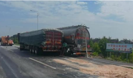 7月6日凌晨1:40,江蘇揚州市119指揮中心接到報警稱:高郵市湯莊鎮(zhèn)安大公路與S333交界處發(fā)生交通事故有;沸孤,接警后揚州市119指揮中心立即調(diào)派轄區(qū)消防救援力量趕赴現(xiàn)場處置。 消防救援人員抵達現(xiàn)場后發(fā)現(xiàn),現(xiàn)場為一輛半掛車追尾一輛裝載33噸;返牟酃捃,導(dǎo)致槽罐車罐體尾部發(fā)生滴漏,地面有大量液體,現(xiàn)場無人員被困,根據(jù)現(xiàn)場情況,消防員立即在道路兩側(cè)拉起警戒線疏導(dǎo)來往車輛不要靠近,同時聯(lián)系吊車對事故車輛進行吊升,槽罐車廠家對槽罐車進行倒罐,并使用水槍對槽罐車泄漏;愤M行稀釋防止意外發(fā)生。 經(jīng)過一段時間的現(xiàn)場救援,槽罐車廠家調(diào)派的倒罐車與吊車等抵達現(xiàn)場,經(jīng)過技術(shù)人員檢查后,工作人員開始進行倒罐。為防止倒罐過程中發(fā)生意外,消防員利用沙土對地面進行覆蓋。一段時間后,工作人員倒罐完畢后交由有關(guān)部門進行處理。 目前,事故原因正在進一步調(diào)查中。