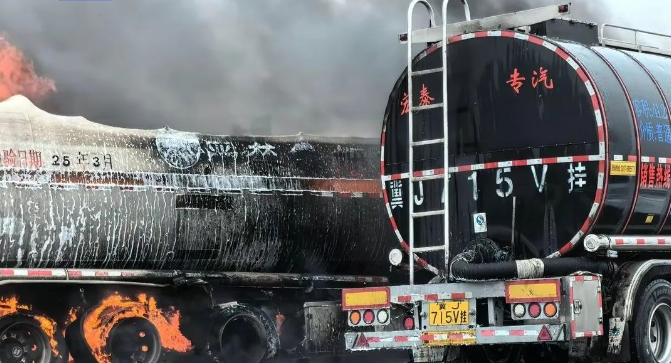 4月19日上午,天津市濱海新區(qū)秦濱高速臨港收費(fèi)站出口有兩輛罐車發(fā)生交通事故后起火。經(jīng)偵察,現(xiàn)場為一輛載有潤滑油的罐車與一輛載有柴油的罐車相撞,造成兩輛罐車起火。