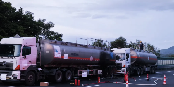 8月1日13時(shí)38分,汕尾市應(yīng)急管理局接到報(bào)告,潮惠高速往惠州方向1250KM+80M(陸河路段)處一輛油罐車有著火冒煙情況。 接報(bào)后,市應(yīng)急管理局高度重視,立即通報(bào)給陸河縣應(yīng)急管理局要求立即派員前往核查處置,并與市公安局、市交通運(yùn)輸局、市消防救援支隊(duì)保持聯(lián)系實(shí)時(shí)了解現(xiàn)場(chǎng)處置情況,通過(guò)高速視頻監(jiān)控實(shí)時(shí)查看現(xiàn)場(chǎng)情況,同時(shí)派出專家組到現(xiàn)場(chǎng)指導(dǎo)處置。 陸河縣成立了由縣政府主要負(fù)責(zé)同志為指揮長(zhǎng)的現(xiàn)場(chǎng)指揮部,公安、應(yīng)急、交通、住建、衛(wèi)健、消防等部門(mén)第一時(shí)間趕赴現(xiàn)場(chǎng)開(kāi)展救援工作,并封閉事故路段。 經(jīng)緊急處置,車輛明火于13時(shí)55分被撲滅。經(jīng)現(xiàn)場(chǎng)確認(rèn),油罐車上汽油未發(fā)生泄漏,系左后側(cè)輪胎自燃冒煙起火。 事故發(fā)生后,事發(fā)路段實(shí)行雙向臨時(shí)管控,擁堵車輛全部進(jìn)行疏導(dǎo)。市應(yīng)急管理局及時(shí)協(xié)調(diào)有關(guān)企業(yè)派出接駁車對(duì)事故車進(jìn)行倒罐處理,并派出業(yè)務(wù)骨干和中石化;穼<亿s赴現(xiàn)場(chǎng)進(jìn)行指導(dǎo)。 因罐體油品溫度較高,救援人員持續(xù)幾個(gè)小時(shí)進(jìn)行淋水降溫處理,待溫度降低后進(jìn)行倒罐作業(yè)。事發(fā)油罐車上汽油已于21時(shí)完成倒罐,事發(fā)路段于21時(shí)45分左右恢復(fù)正常通行,至此險(xiǎn)情處置完畢。由于滅火救援工作及時(shí)高效,本次事故未造成人員傷亡。