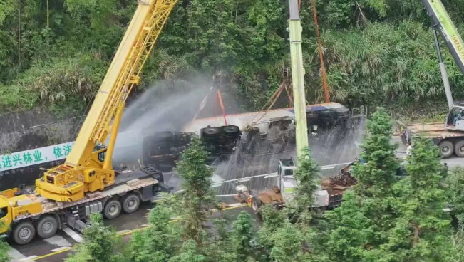 6月3日凌晨5時許,湖南藍山縣一輛裝載液化石油氣的重型半掛牽引車在行駛至G537線南風坳路段時發(fā)生側(cè)翻,情況非常危險。事故現(xiàn)場,在G537線南風坳路段,一輛湘M牌照的槽罐車側(cè)翻于交通干道彎道處,罐體內(nèi)裝載約有25噸液化石油氣,一旦罐體發(fā)生泄露,將威脅到周圍幾公里內(nèi)群眾的生命安全。 根據(jù)現(xiàn)場情況,立即成立了現(xiàn)場指揮部,劃定警戒區(qū)域,對警戒范圍內(nèi)的人員進行疏散,并對G537所城至南風坳路段實施交通管制,保障救援通道暢通。中午12時10分許,在確保現(xiàn)場無氣體泄漏后,吊裝作業(yè)組對槽罐車實施扶正作業(yè)。經(jīng)過13個小時全力救援和處置,順利完成了槽罐車側(cè)翻現(xiàn)場清理和安全評估工作,G537線南風坳路段也于19時恢復通行。截至4日凌晨2點,槽罐車被安全轉(zhuǎn)移至所城液化氣站,并將罐體內(nèi)的液化氣安全卸載,險情得到解除。
